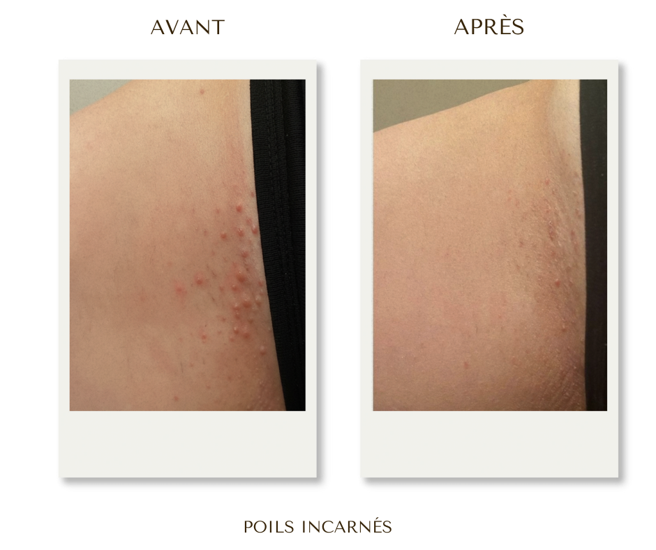 Réduit poils incarnés, peau sèche et zones rugueuses